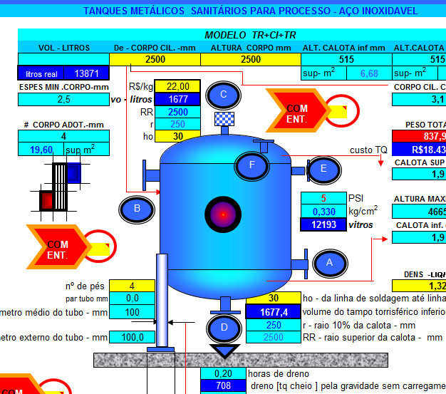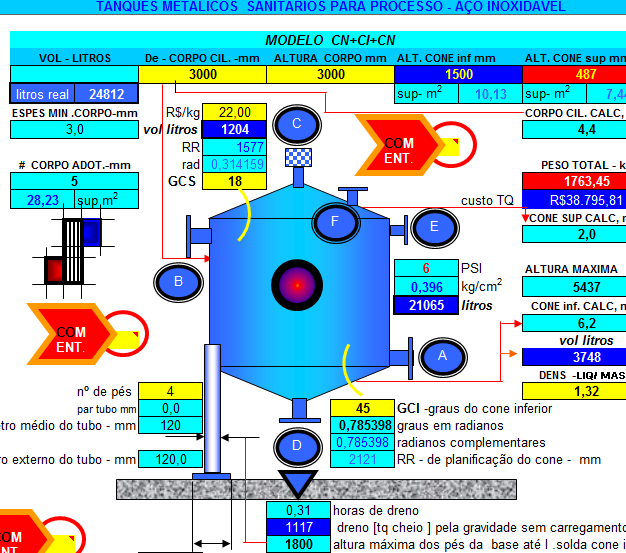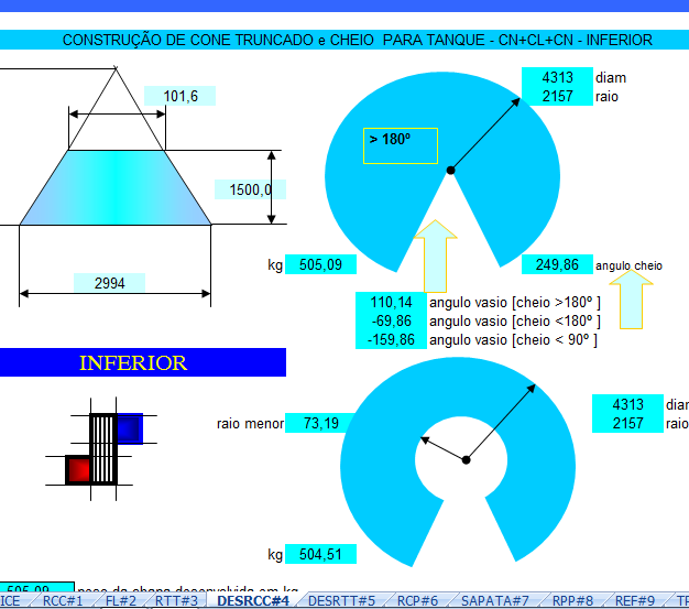 FP N3 Applications: Spreadsheet for calculating and sizing the side, conical bottom and top in tanks