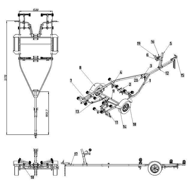 Desenvolvimento de projeto para fabricação de uma carretinha para transportar canoas de 6,00 mts especificando as dimensões das corretas, tipo de material etc….