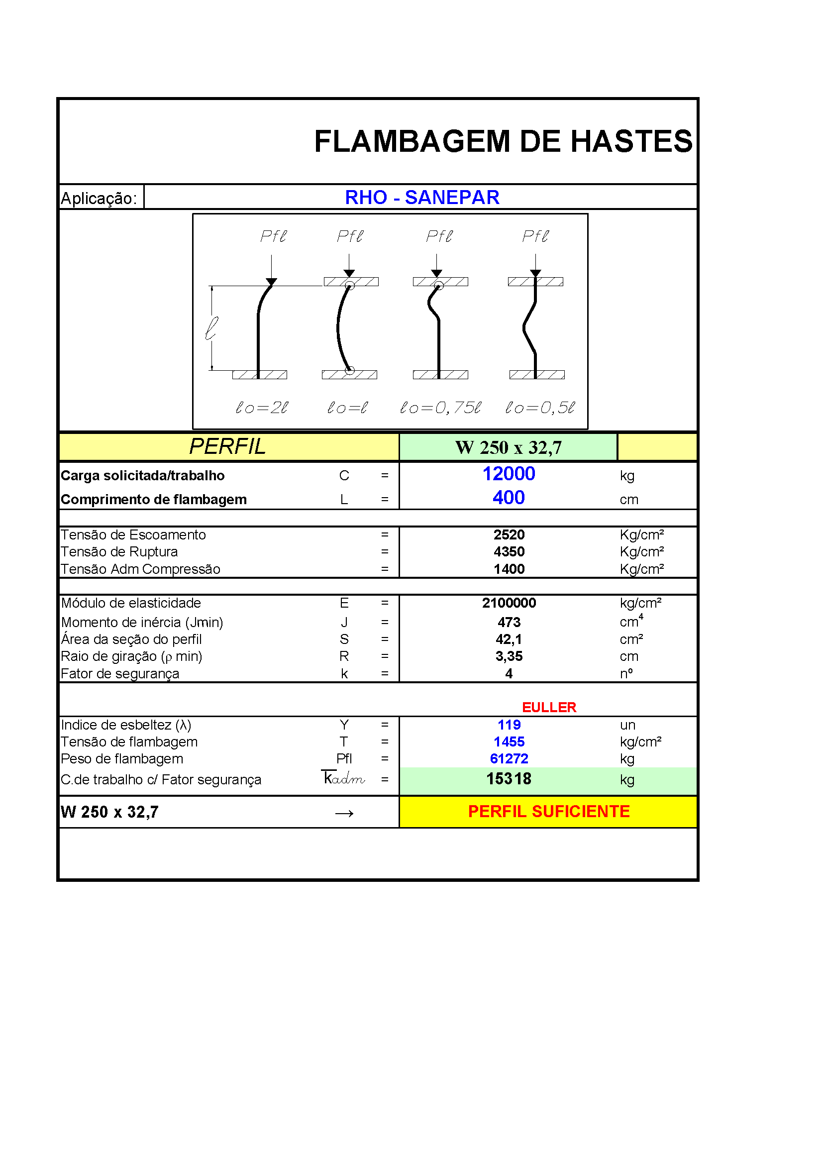 Planilhas de Calculo N2: Cálculo e Seleção de Vigas em Flambagem em Hastes