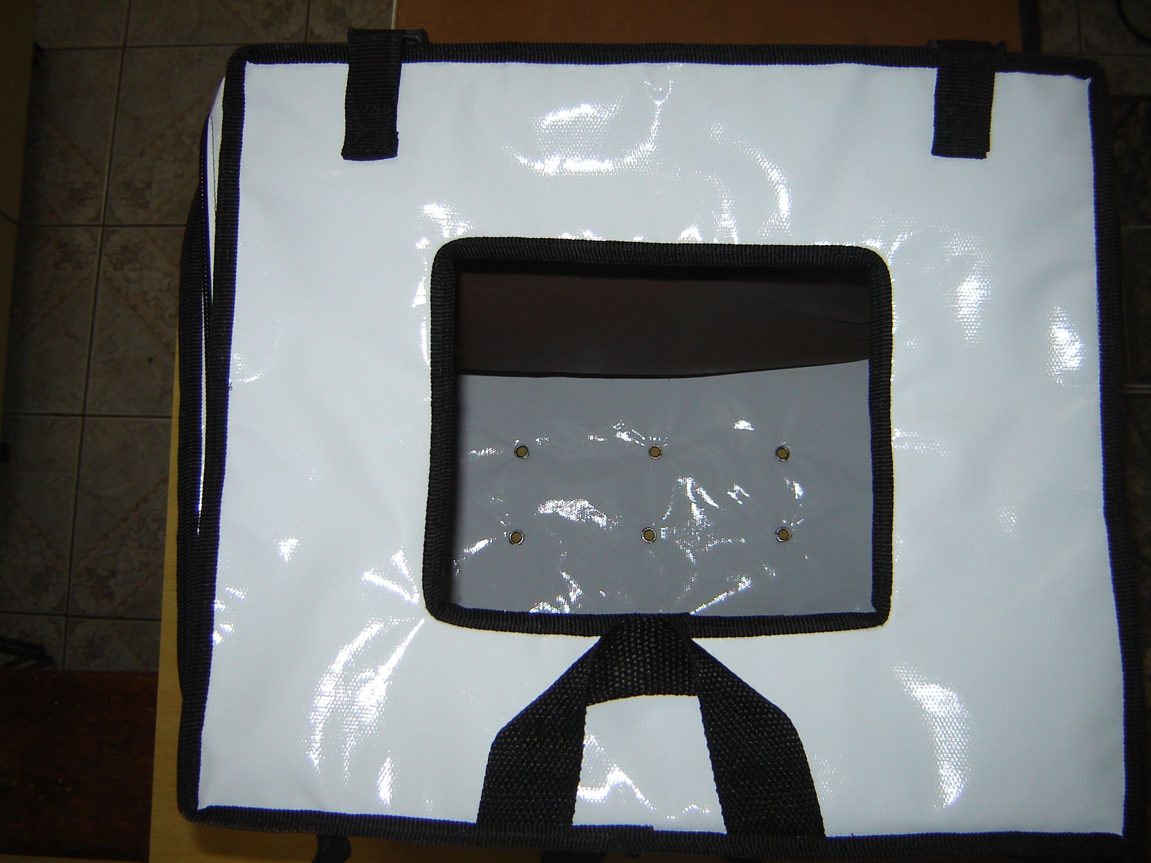 | I need drawing / backpack design for collecting aluminum cans on the street, bottom holes with eyelets, for liquid outlet. Need to contain handles and back, Chest and waist adjustment, plus zippered top lid for full opening, also contain internal wire frame. |