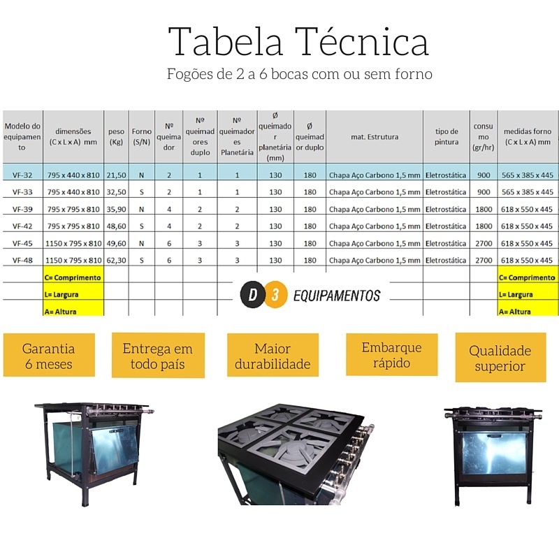 Manufactured according to Brazilian standards for industrial stoves