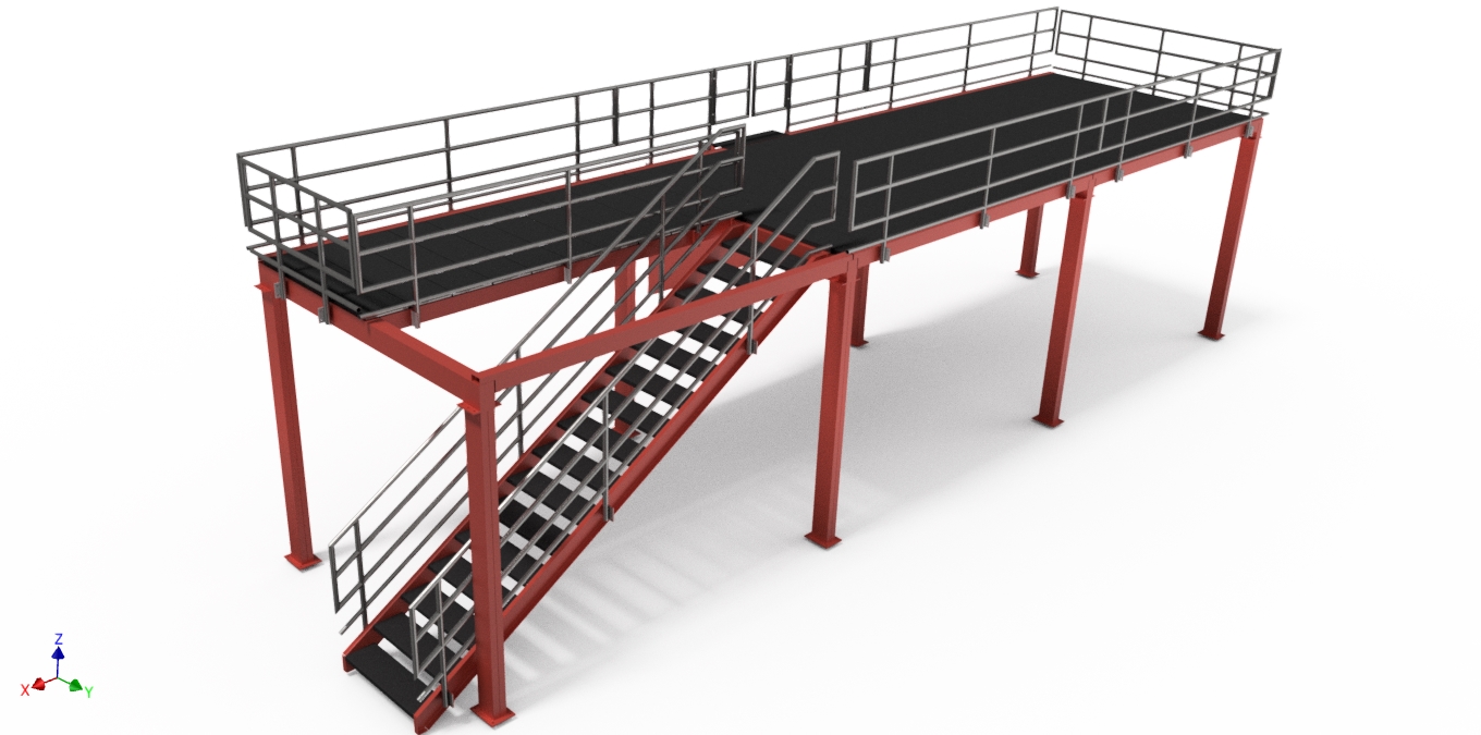 Projects Published Project Factory: Metallic Mezzanine Project with access ladder and guardrail. * Checkered plate floor. * Guard fixed by screws. * Mezzanine structure in W and U profiles. * Structure calculation performed according to standard. * Detailed project with material listing, calculation and manufacturing design memorial.