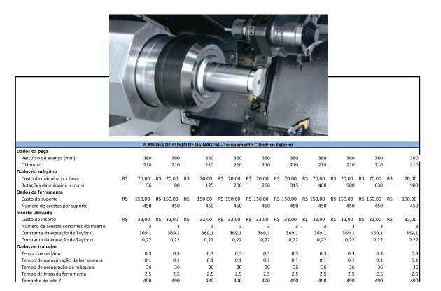 Worksheet N2: Spreadsheet uses machine data, part data, insert used, work data, advance, cutting parameters; to calculate machine costs, tool, machining and …
