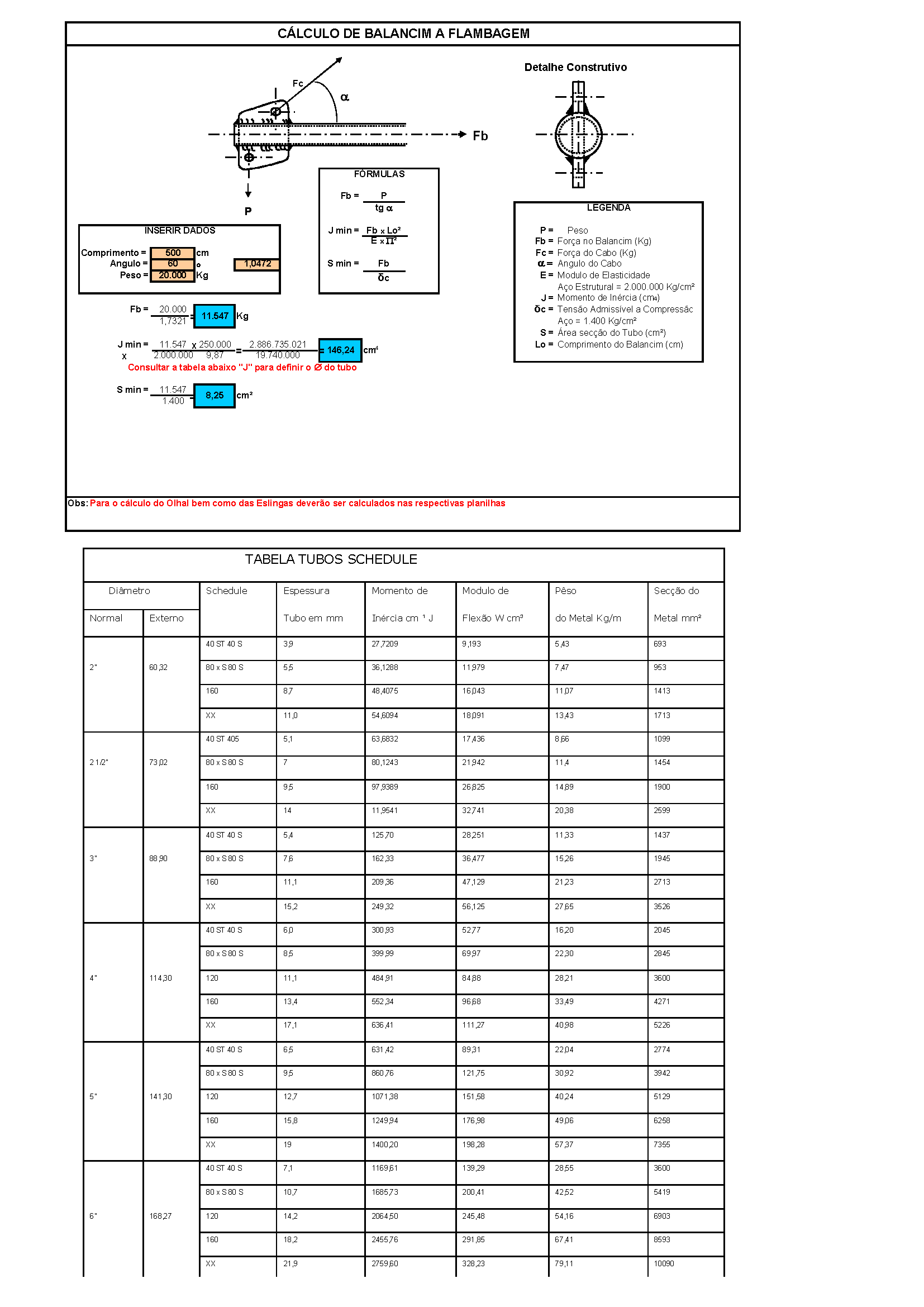 Hoja de trabajo para el cálculo del balancín en el tubo hasta el pandeo.
