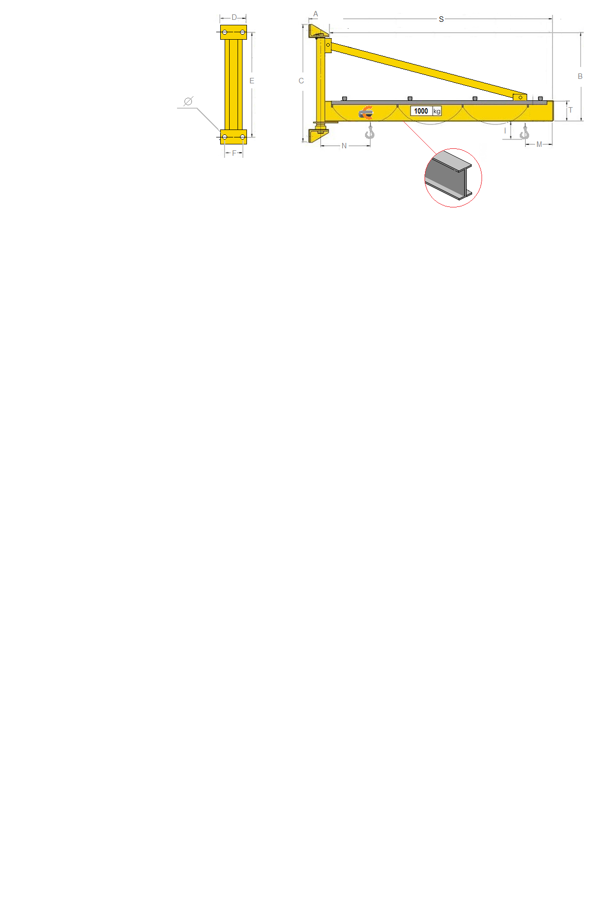 ESTRUCTURA PARA POLIPASTO MURAL GIRATORIO CON , GIRO 180 GRADOS, CAPACIDAD DE LA BATERÍA 2000 KILOGRAMOS, LARGO 4 MTS, ELEVACIÓN 6 MTS.