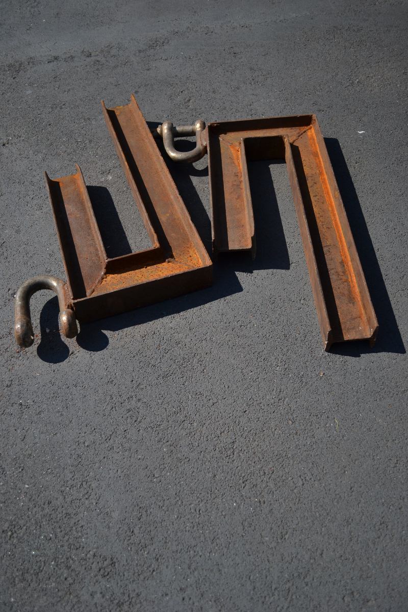 Necesito un diseño para una herramienta C para levantar tuberías de hormigón., tiene que soportar una carga de 4 Toneladas y no se puede doblar, o sea, con el tubo izado, la pieza debe ser estable.