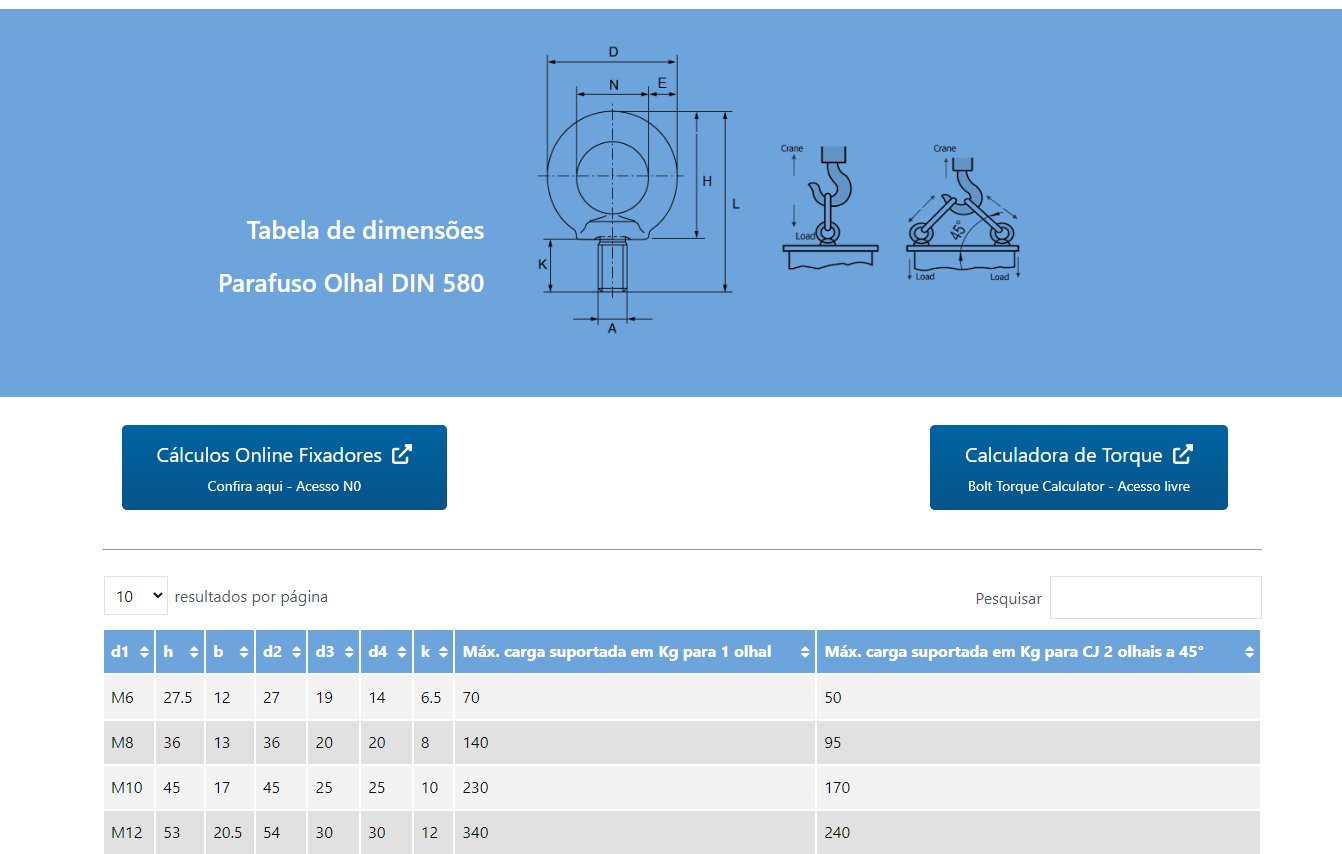 Tabla de dimensiones de pernos de argolla DIN 580 Cálculos ...