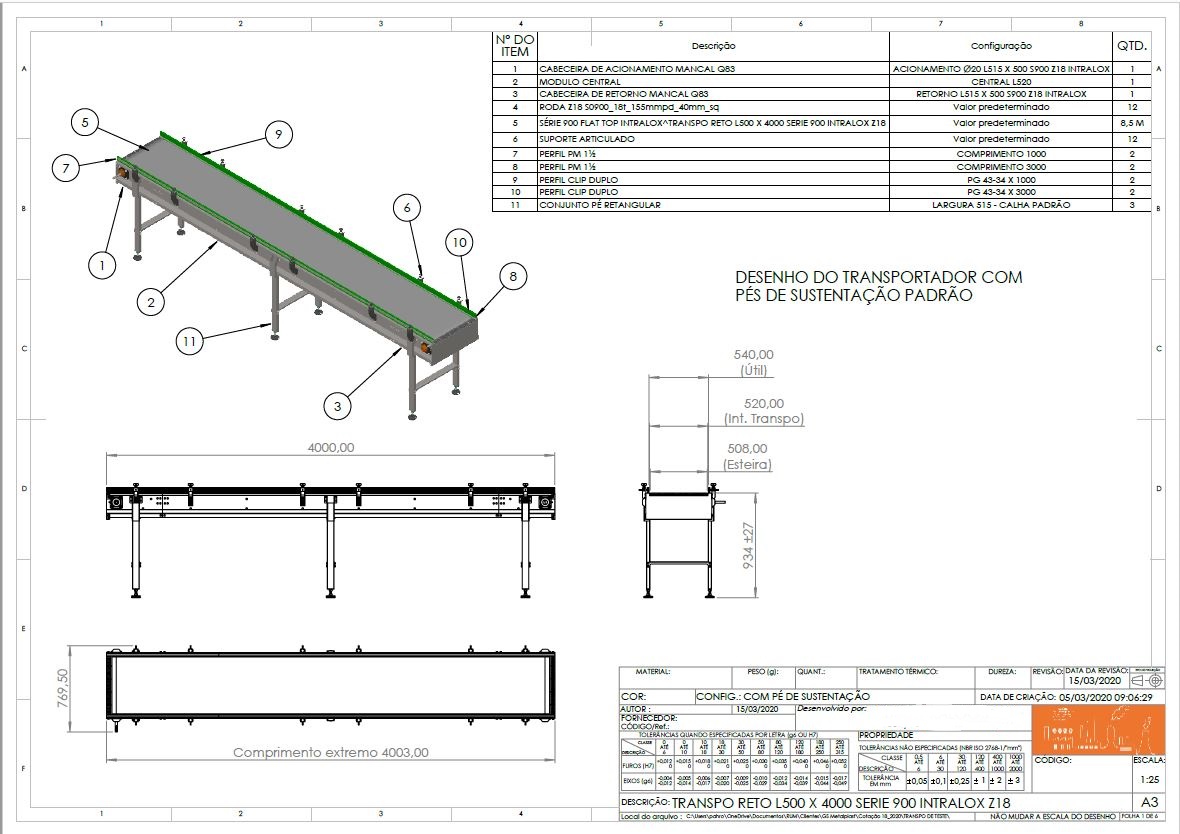 FP Proyectos Publicitados Proyecto para equipos de transporte de productos en general con estructura metálica de Acero al Carbono o Acero Inoxidable, según la necesidad de la aplicación, cumpliendo con las normas de seguridad NR12, y su uso es adecuado en ambientes refrigerados, pescados, bebidas, industria de alimentos, transporte de cajas en general, Serie de soldadura cero. Segmentado en módulos de fácil montaje y mantenimiento que no…