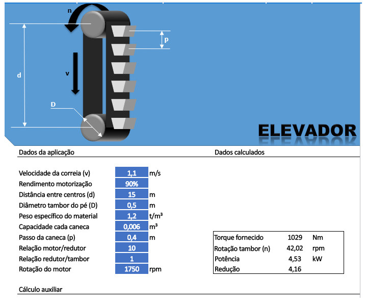calculo en linea: Cálculo de potencia para conducir elevadores de cangilones