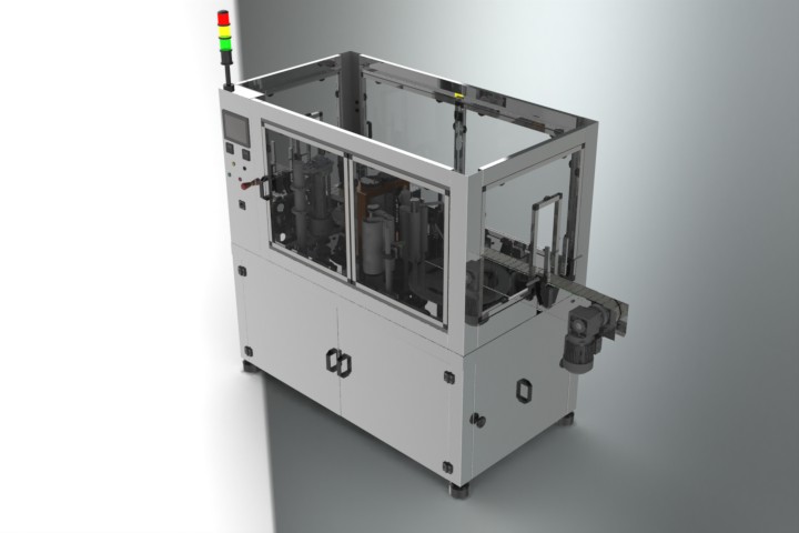 Conception complète d'une étiqueteuse de bouteilles cylindriques.