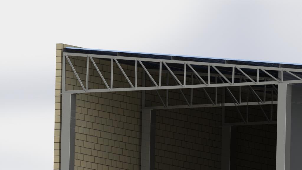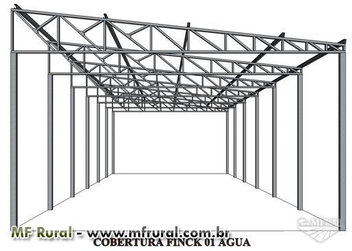 Toiture métallique de 12m sur 12m, 1 L'eau, Profil en U.