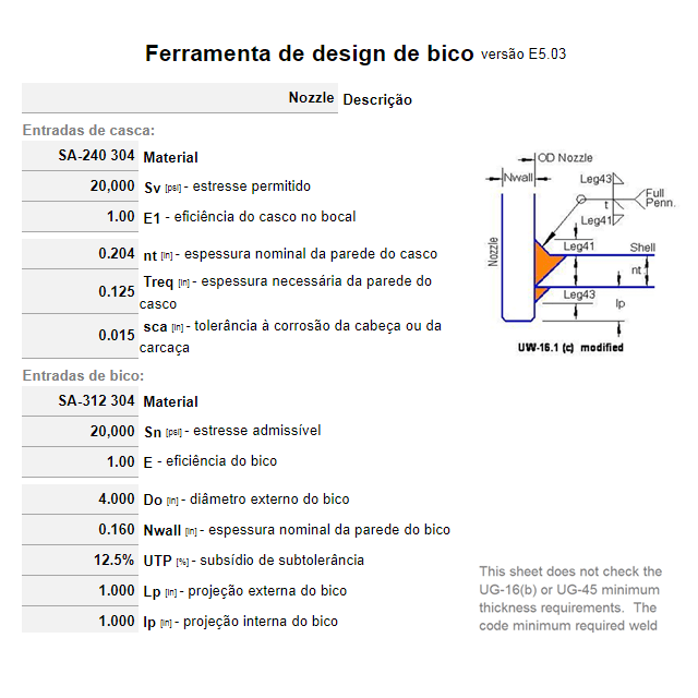 Effectuer des calculs ASME VIII-1 côté buse sans renfort. Appliqué uniquement pour la pression interne!