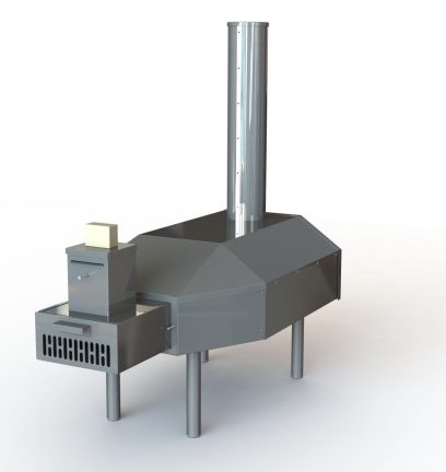 Projetos Divulgados FP Forno projetado em inox 430 desmontável e com compartimento para lenha. Capacidade para uma pizza grande (8 pedaços) com placa em cerâmica refratária para receber a pizza. O mesmo é bem vedado e não tem contato do fogo com a pizza, devido aplicação de chapa corta fogo. Tendo 200mm de altura da superfície onde será colocado e 654x456x212mm (PxCxA) no forno.